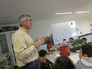 No dia 8 de Fevereiro,realizamos mais uma visita ao laboratório do Professor Virgílio; levamos a nossa estufa com os feijões já bem crescidos assim como as cebolinhas.